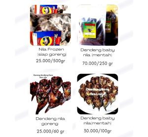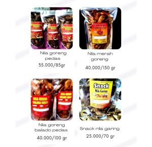 Untuk harga tentu banyak varian nya juga, mulai dari harga 20 ribu per 50 gram sampai 75 ribu per 250 gram untuk Snack Nila Garing original. Sementara untuk harga Snack Nila garing pedas, mulai dari harga 35 ribu per 85 gram sampai dengan harga 40 ribu per 100 gram. Sedangkan dendeng nila siap goreng dengan harga 25 ribu per 60 gram dan Frozen nila 25 ribu per 500 gram.