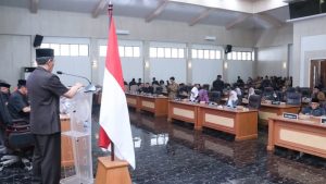 Rapat Paripurna dipimpin Ketua DPRD Kabupaten Sukabumi, Budi Azhar Mutawali, dan dihadiri unsur Forkopimda, Forkopimcam, serta sejumlah tamu undangan.