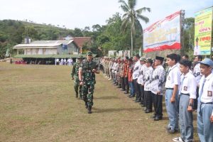 Sebelum peninjauan hasil pembangunan fisik, dilaksanakan upacara penutupan TMMD terlebih dahulu di Lapang Desa Langkapjaya, Kecamatan Lengkong.